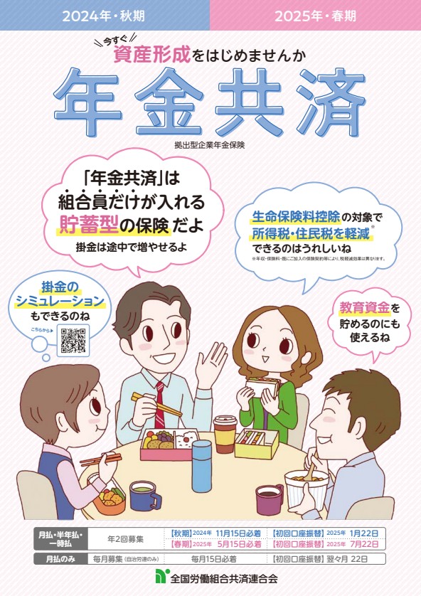 また、もしもの時の備えだけでなく、将来への備えとしての「年金共済」、労働組合が主催する行事に参加した時に発生した事故やケガを保障する「行事スポット保険」も取り扱っています。