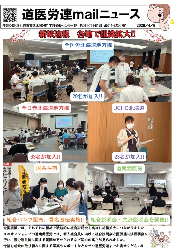 25道医労連mailニュース2026.4.6 新歓速報のニュースを発行しました。