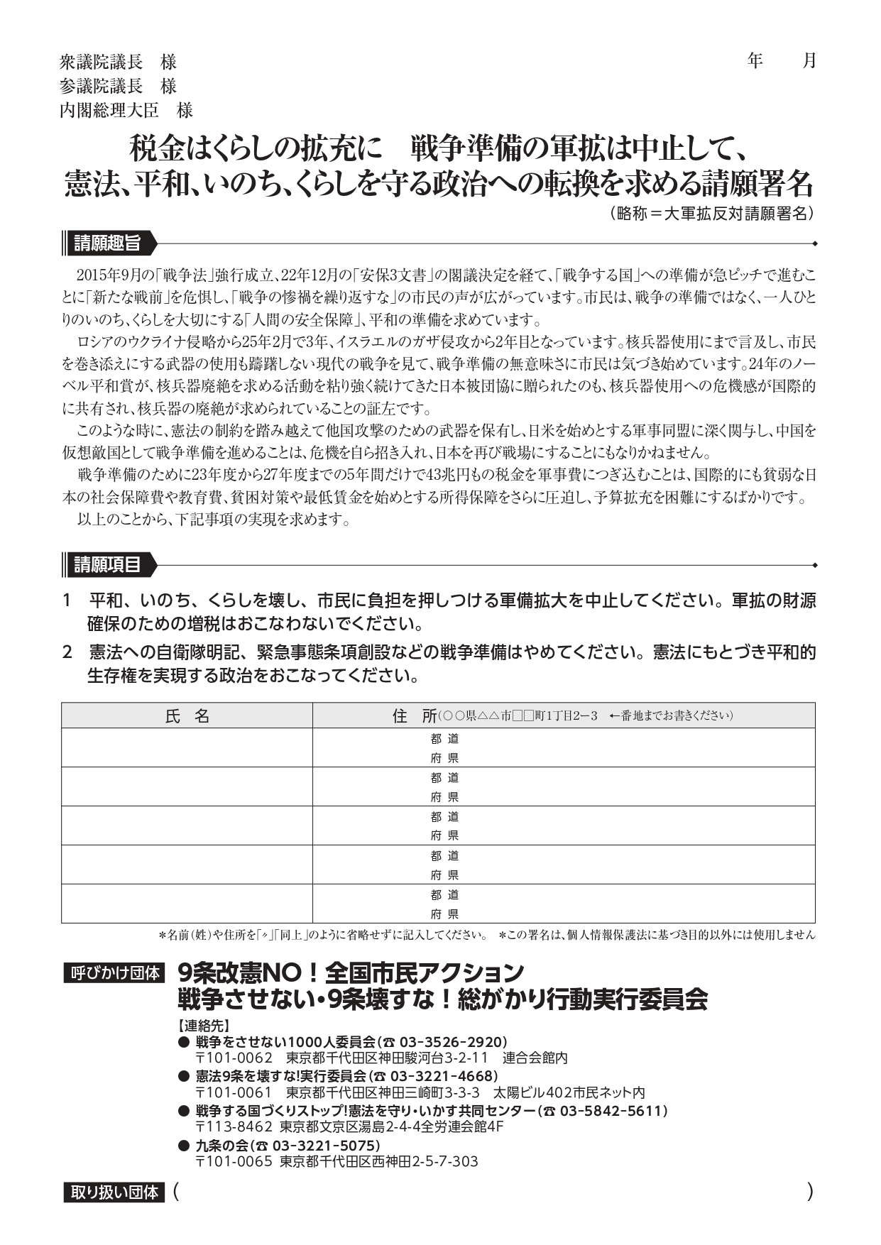 大軍拡反対署名