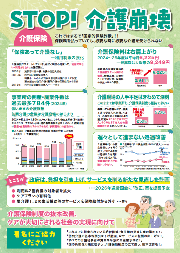 介護保険制度の抜本改善、大幅な処遇改善を求める請願署名
